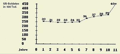 Das US-Bureau of the Census, eine Regierungsbehörde, veröffentlicht seit dem 19. Jh. Statistiken. Eine solche über die Ausgaben für die Rüstungsproduktion sind in den relevanten Zeiträumen interessanterweise nicht zu finden, was selbst schon einen gewissen Hinweis gibt. Dennoch ist es möglich, aus zwei Statistiken den gewünschten Aufschluß zu erhalten: die Zahl der aktiven Soldaten in der Armee und die Investitionen für militärische Anlagen. Um die Wende 1938/1939 ist eine auffällig übereinstimmende Zunahme von US-Rüstungsanstrengungen in zwei verschiedenen Ausgabenbereichen zu finden. ( 8 )