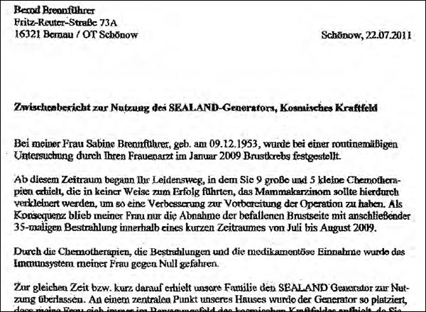 Dokumentation der Wirkung des Sealand-Generators (Vril-Energie) unter ärztlicher Aufsicht