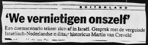 Das bekannte niederländische Magazin »ELSEVIER« veröffentlichte ein Gespräch mit dem israelisch-niederländischen Militärhistoriker Martin van Creveld, der in naher Zukunft das für möglich hält, was in der Bibel als »Armageddon« (Offenbarung Johannes, 16,16) angekündigt wurde.