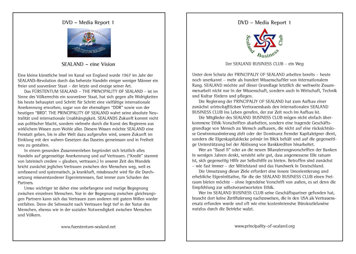 Inhalt: 10-jähriges Bestehen der Principality of Sealand, Festakt mit Roy of Sealand, Außenminister und Regierungschef Prof. Gottfried Alexander Achenbach sowie der ständige Rechtsberater am internationalen Gerichtshof in Den Haag Dr. Adrian L. Chr. M. Oomen. Originalaufnahmen vom Staatsgebiet u.a.