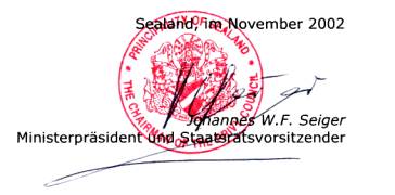 Dokumentiert im Internet [www.Principality-of-Sealand.net]