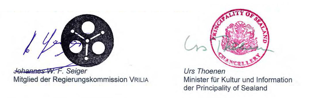Johannes W. F. Seiger Urs Thoenen Mitglied der Regierungskommission Vrilia Minister für Kultur und Information der Principality of Sealand