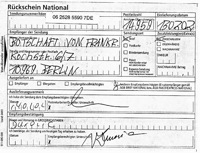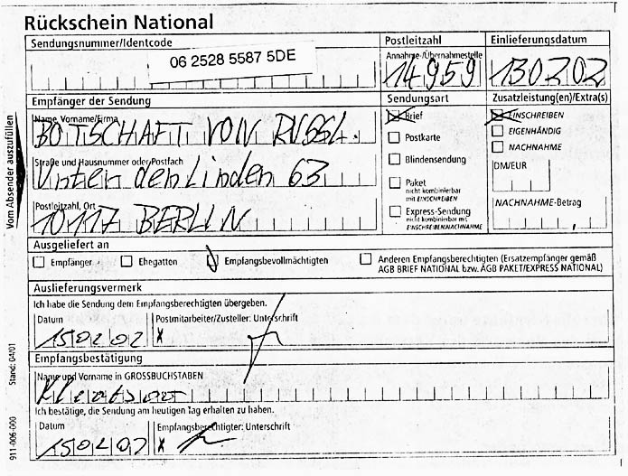 Rückschein vom 14.2. 2002